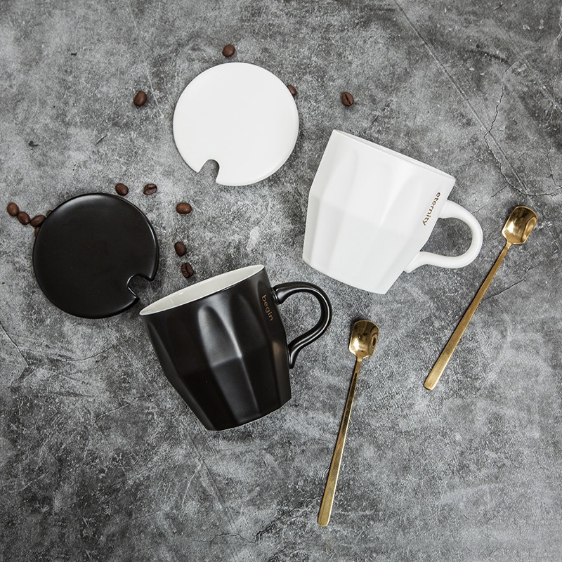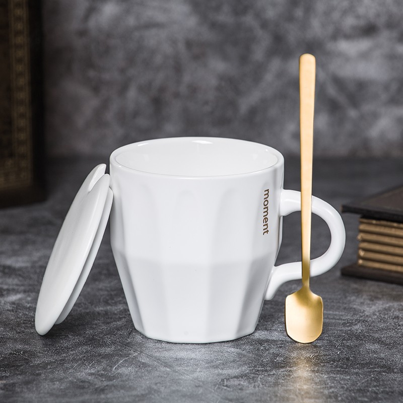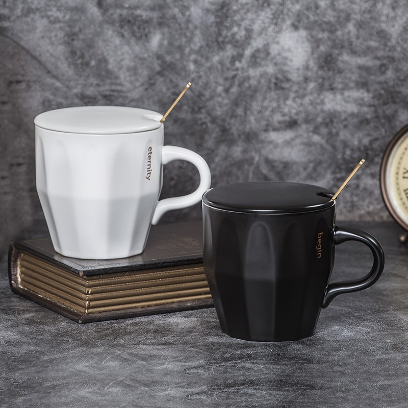 Love House Green creative ceramic mug milk cup coffee cup water cup home breakfast cup with lid and spoon
