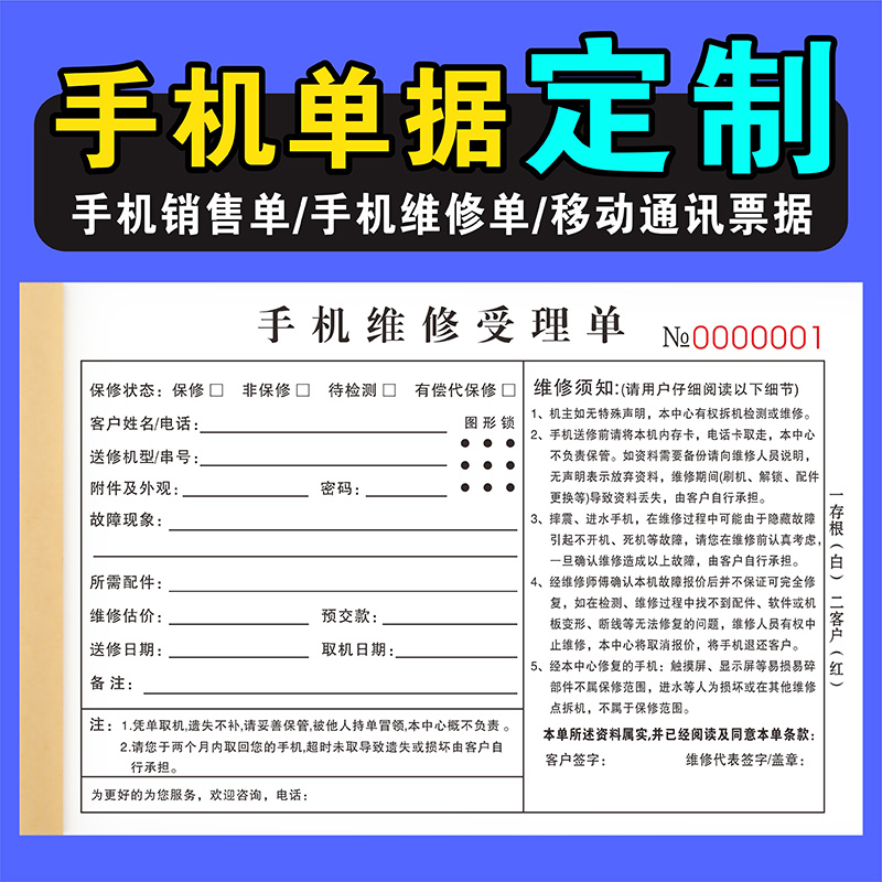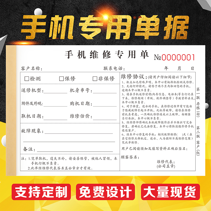 Mobile Phone Store Sales Single Two Couplets Electrical Appliances Home Appliances Warranty List Tickets Repair Invoicing Open Single Book Triple Mobile Newsletter Specialty Bill Aftersale Service Repair Acceptance Receipt Customization
