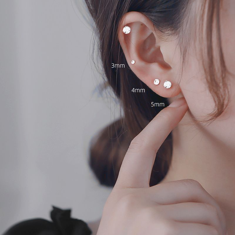 Ear piercing S925 sterling silver ear pin to sleep without picking mini flash diamond silver earrings simple and versatile male and female ear bone pin