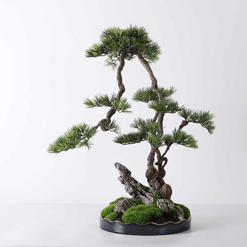 New Chinese simulation pine welcome pine Bonsai Arhat pine plant potted exhibition hall Living room hotel zen ornaments