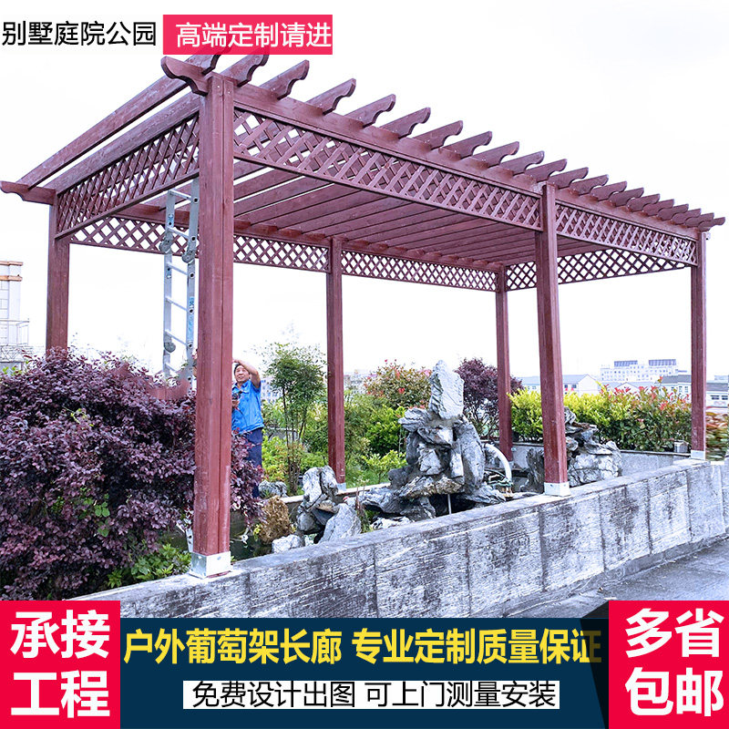 Anticorrosive wood grape rack courtyard carbonized wood outdoor gazebo Outdoor porch Climbing pergola Flower rack Promenade Simple garden