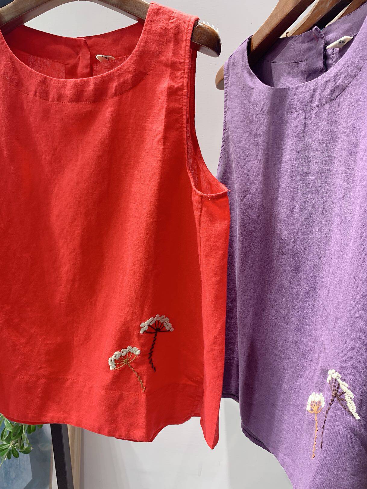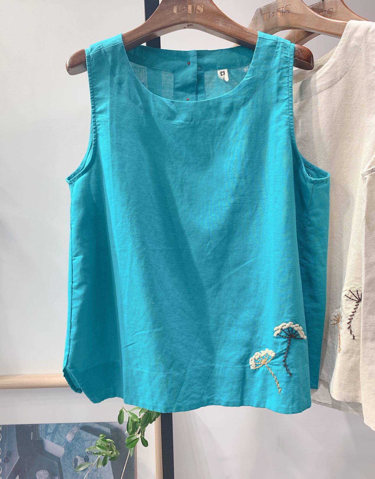 Retro Art Embroidery Round Collar Cotton Hemp Vest Woman Fit Summer New Loose Sleeveless Linen Waistcoat shoulder jacket