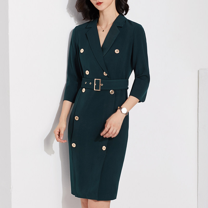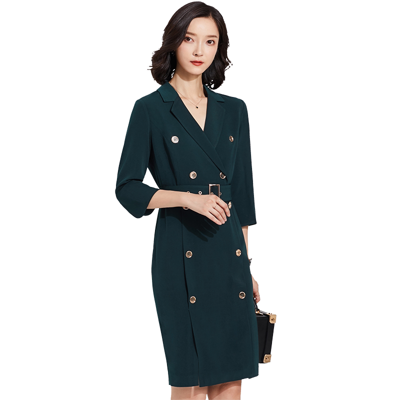 Work clothes Dress Temperament Goddess Van Spring New Ink Green Retro 70% Sleeve OL Commute Casual Positive Dress