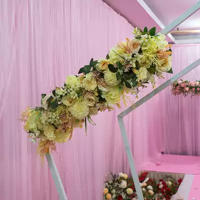 New rose hanging row flower stage background wall welcome area layout decoration road lead flower wedding simulation flower art