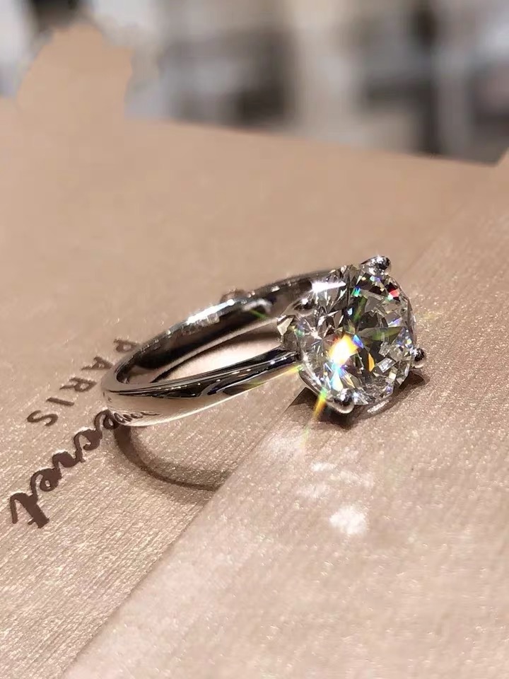 24K Platinum Inlays Imported Mosanstone D Color Quadclaw Ring PT950 Ring Courseto Betrothed Gift Brief Lady