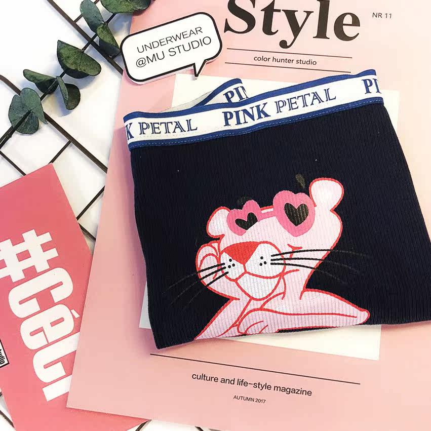 Korean PINK letters red pink leopard cartoon cotton lace edge cute sports mid-rise girl briefs