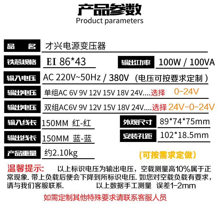 100W square cow EI transformer isolated 220V 380V variable 6V12V12V18V18V24V36V48V roast duck machine