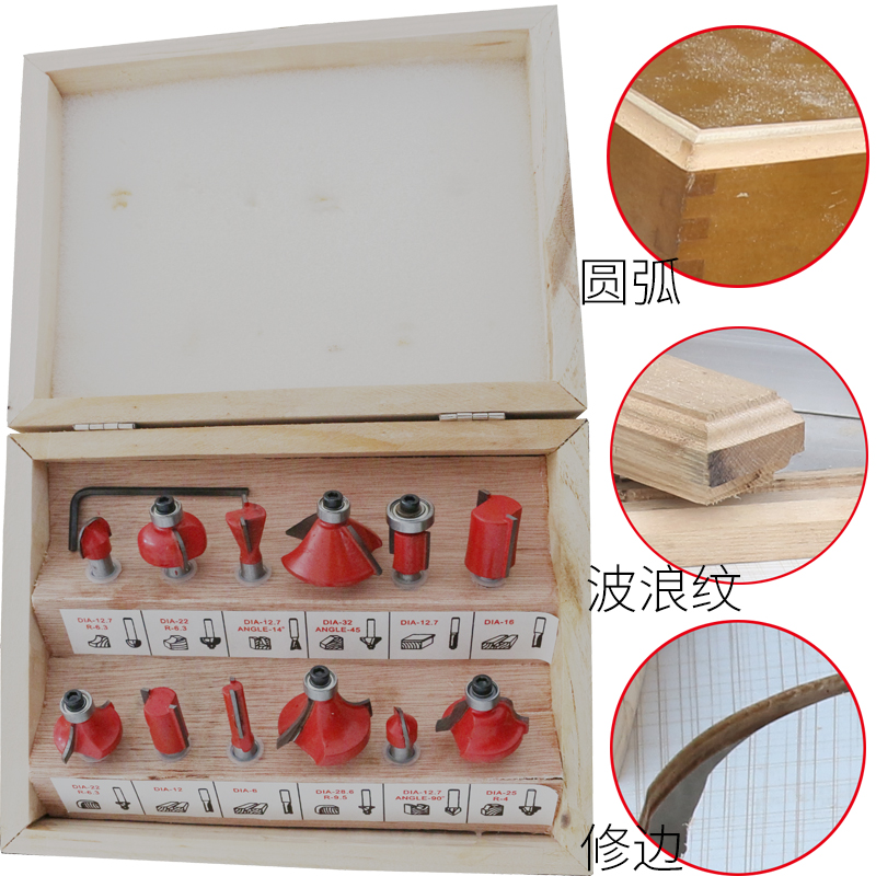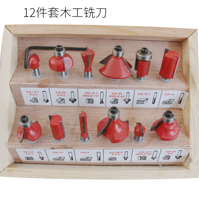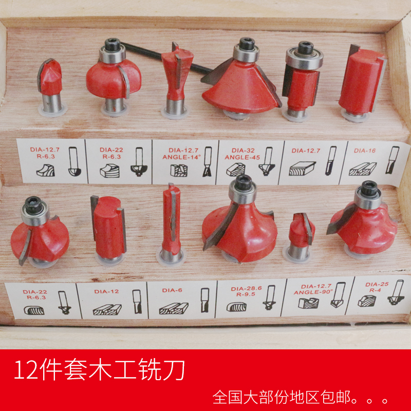 12-piece 1 4-handle woodworking milling cutter set Slotting knife Engraving mechanical and electrical wood milling trimming machine with tungsten steel alloy head