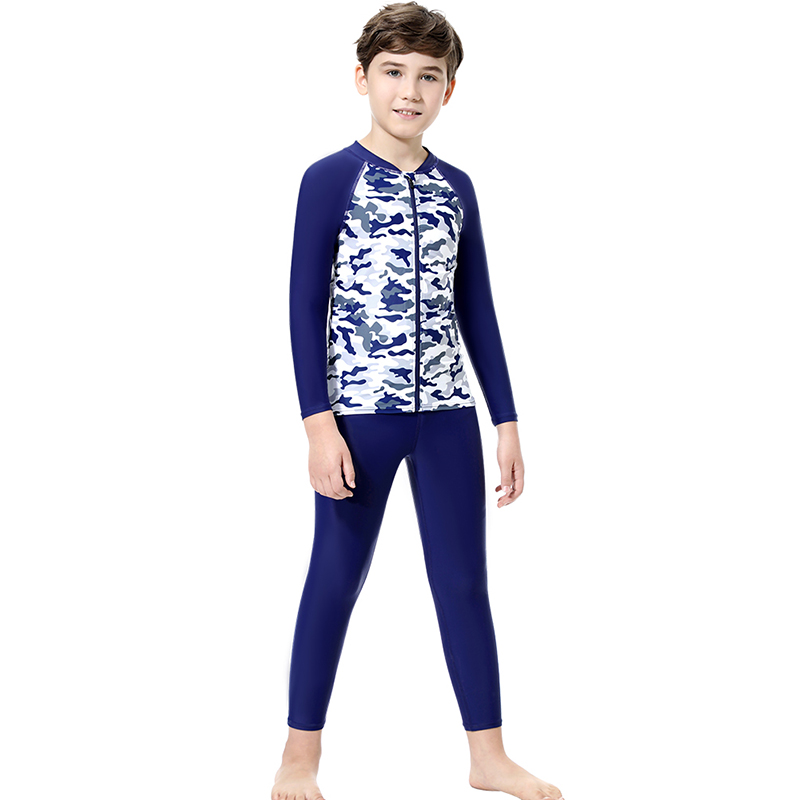 Children's swimsuits, boys, students and teenagers, large size anti-spring sleeves, long trousers, split medium and large children's diving swimsuit set