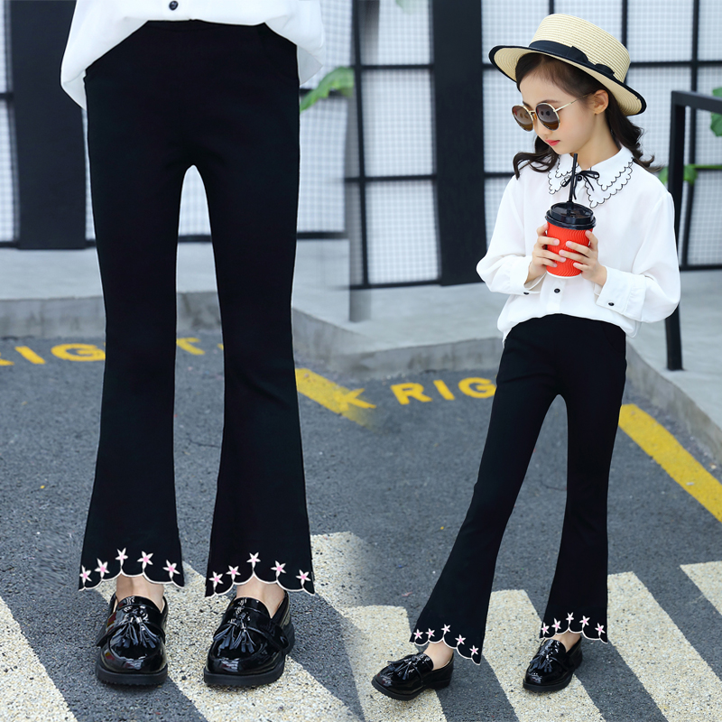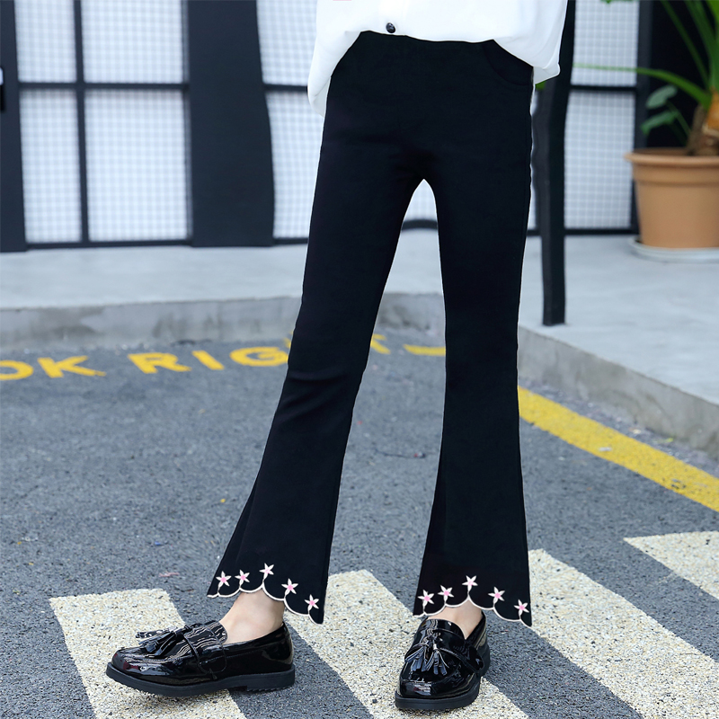 Girls' flared pants autumn 2022 spring and autumn foreign style 10-year-old middle-aged children's elastic slim black casual trousers