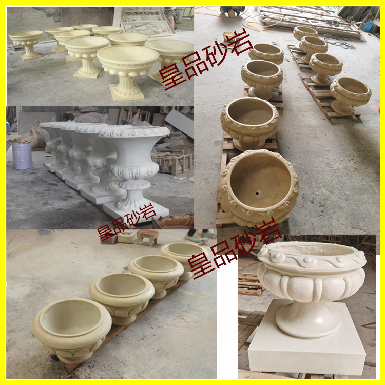 Huangpin sandstone flower pot Park Community garden European art flower pot Glass fiber sculpture factory direct sales