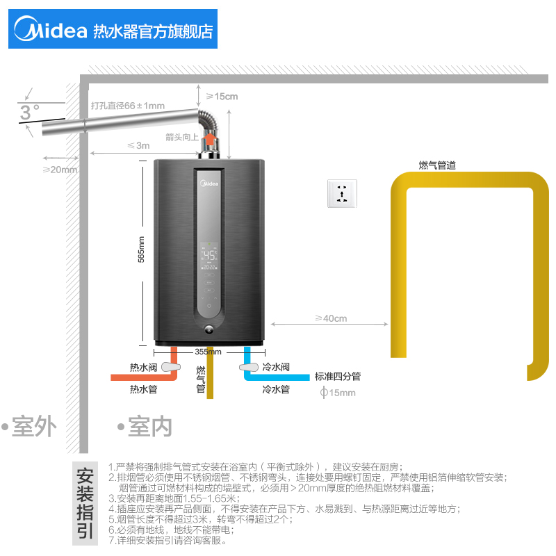 Midea gas water heater Smart home appliances Household gas constant temperature zero cold water instantaneous heat strong row type 16 liters Y9