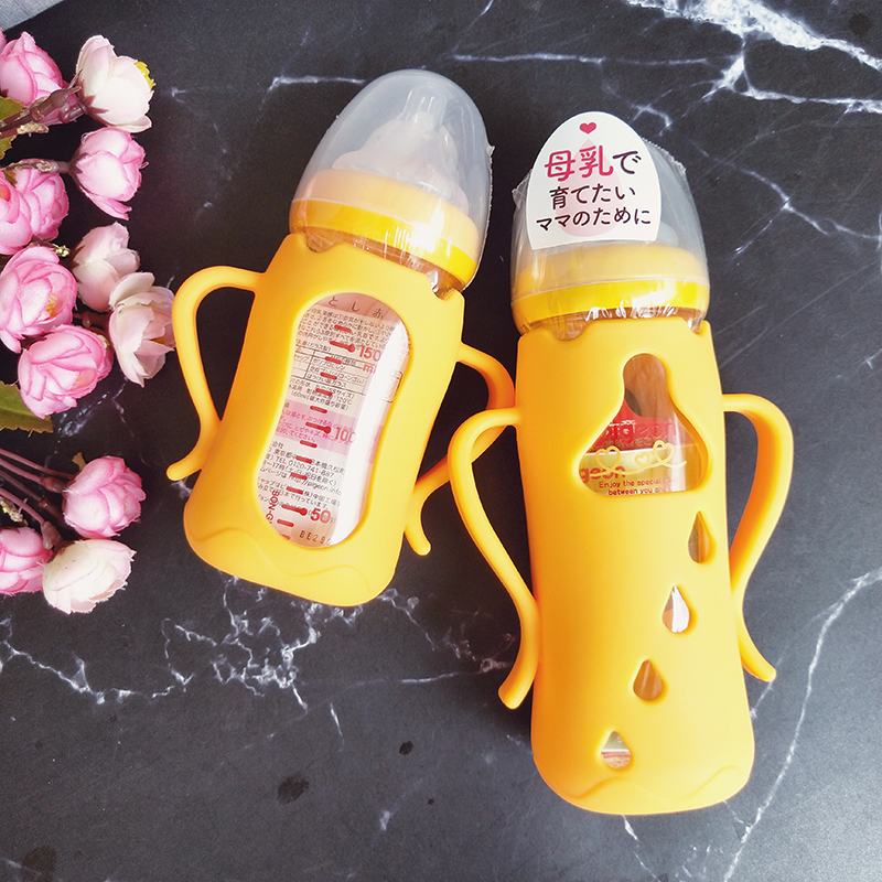 Adapted Beloved wide mouth glass feeding bottle protective sleeve accessories General anti-fall silicone sleeve straw handle shank gravity ball