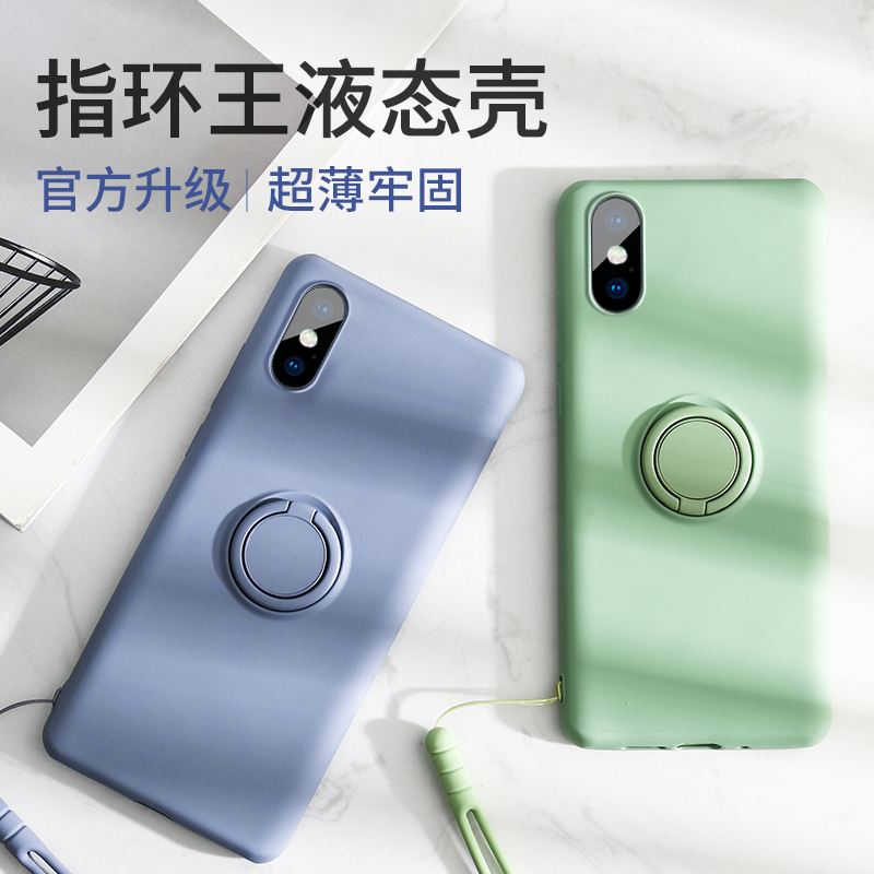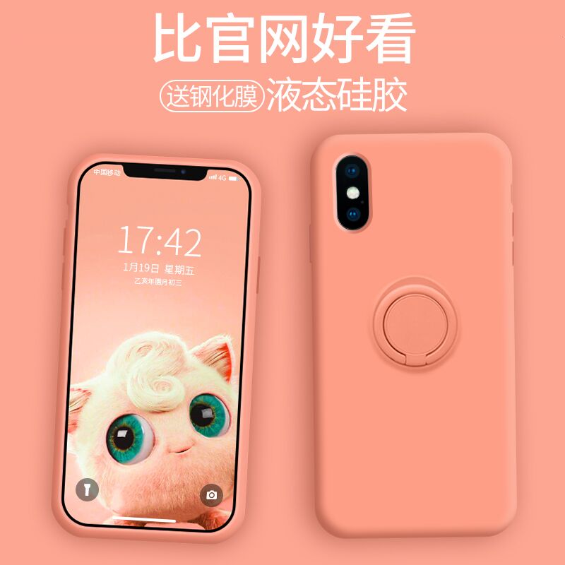 Apple X mobile phone case XR liquid silicone iPhoneX ring with bracket iPhoneXMAX all-inclusive anti-fall XSMAX personality XS creative XR trendy brand lanyard men and women I