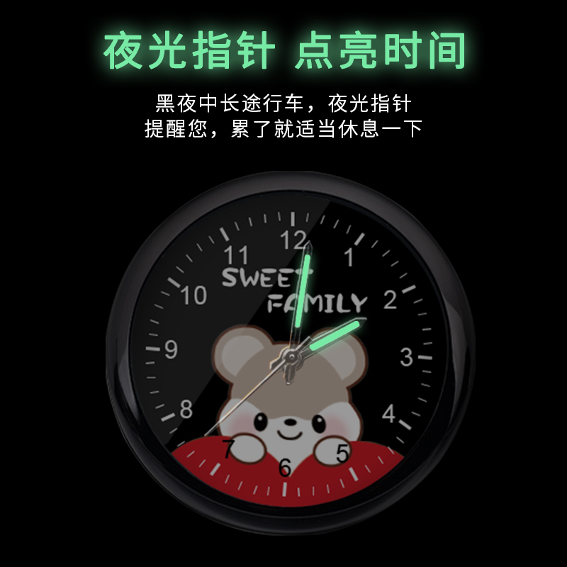 Car electronic clock cartoon cute ornaments creative luminous car clock air outlet schedule quartz clock