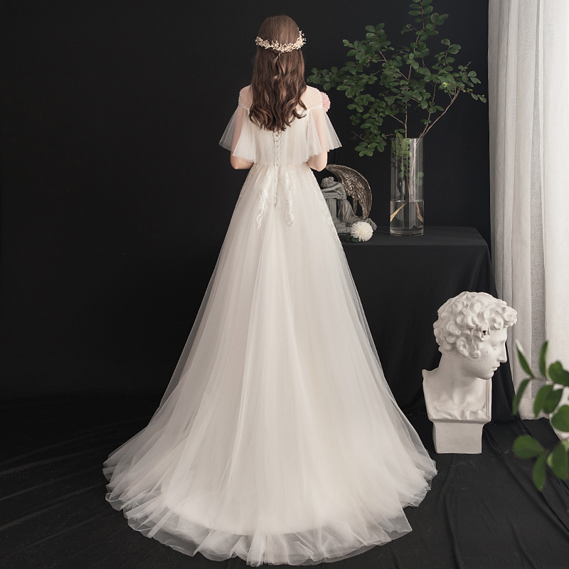 Forest light wedding dress female 2021 new bride Korean simple small tail dream super fairy French simple small man