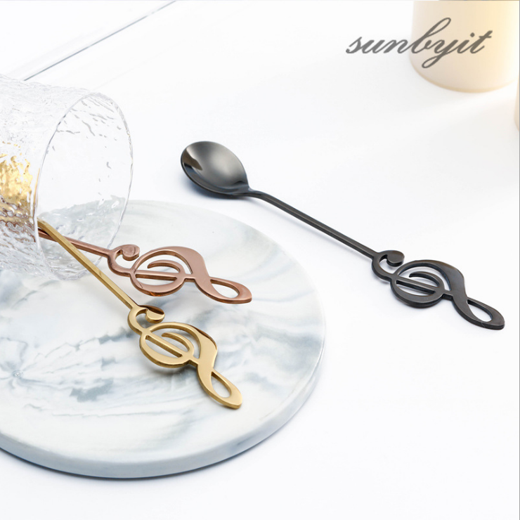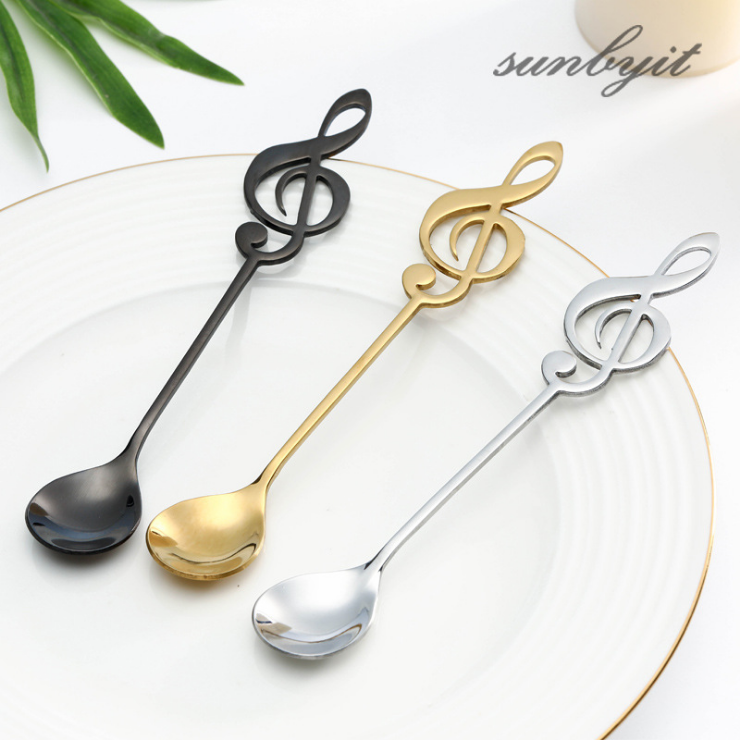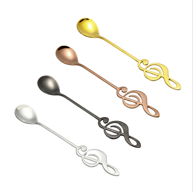 Seven Color Notes Gift Coffee Milk Tea Dessert Spoon 304 Stainless Steel Long Handle Stirring Spoon Creative High Sound Spectrum Number