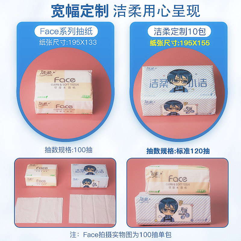 Jierou Paper Paper Paper Large Bags Household Real Hui Pack Large Size 120 Pumping 10 Bags of Napkins Facial Tissue