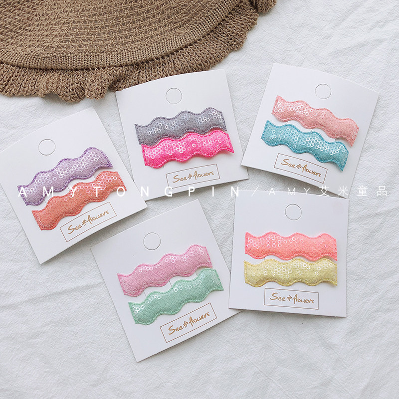 Korean Children's Parent-Child Fluorescent Candy Sequin Color Hair Clip Simple Wave Basic Browsing Seaside Clip Hair Accessories Headdress - Taobao