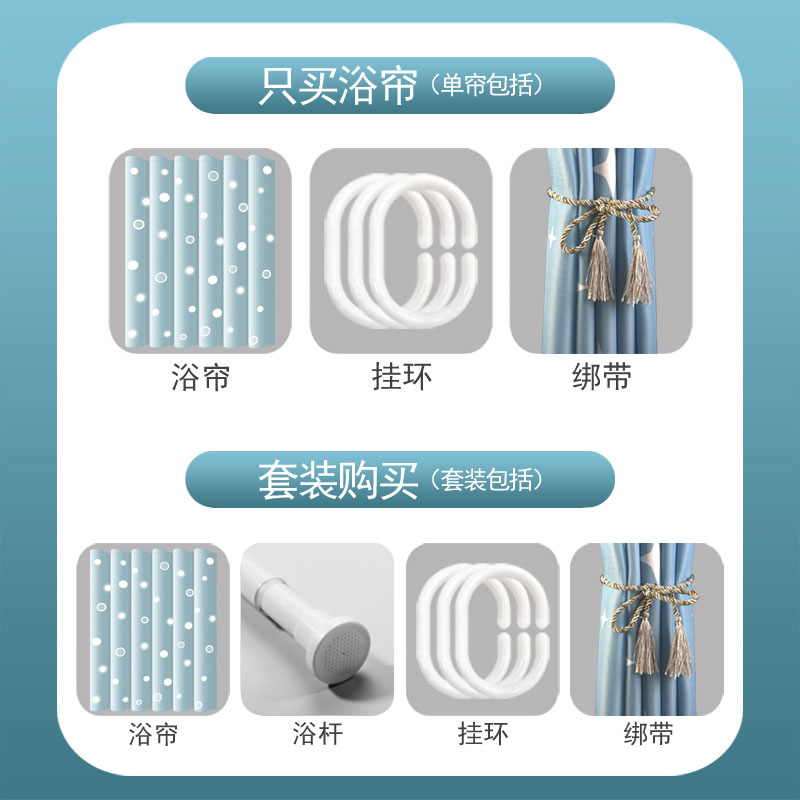 Bathroom shower curtain thickened waterproof and mildew-proof shower curtain cloth bathroom curtain partition shower curtain door curtain hanging curtain free of punching