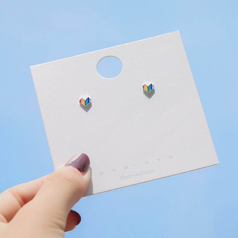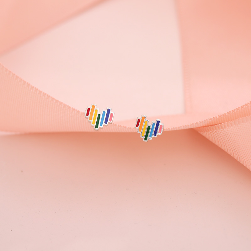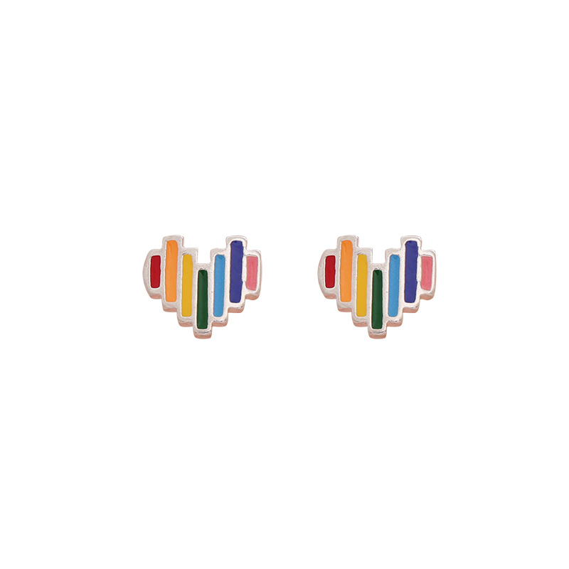 S925 sterling silver rainbow love ear needle female niche design color simple small sleep without picking earrings female