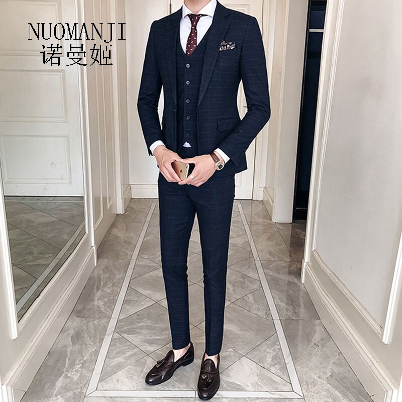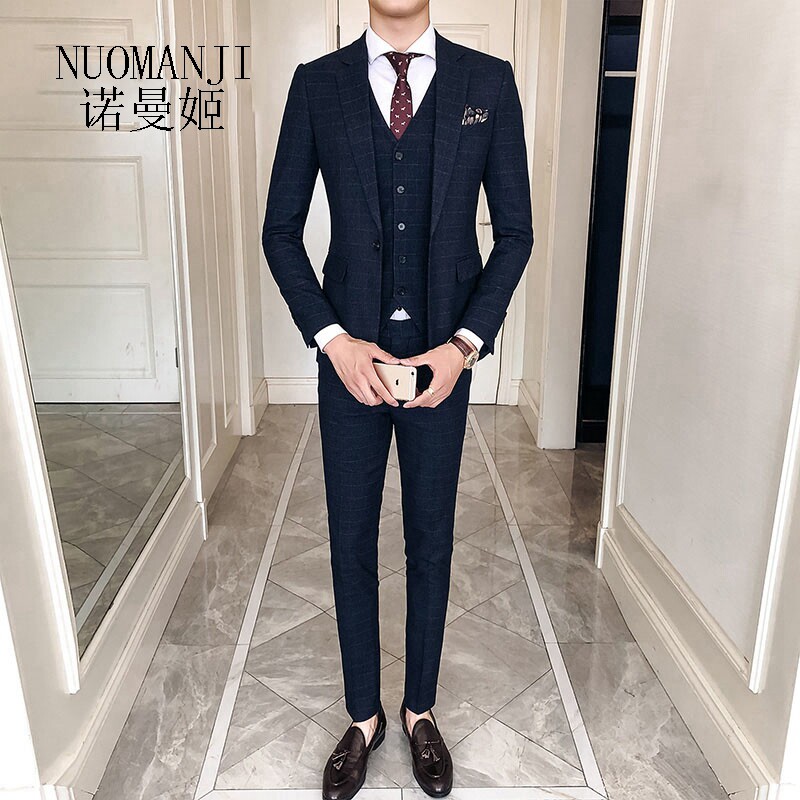 Norman Ji Fashion High-end Men's Suit Business Temperament Gentleman to Work Atmospheric Handsome Plaid Suit Suit