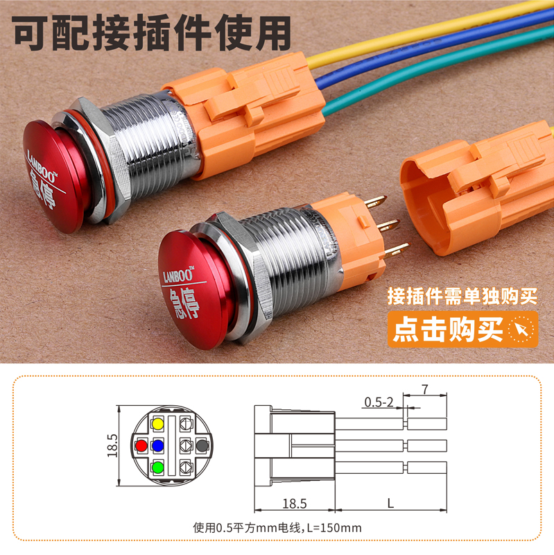 No lamp with 3 wire connectors small head stop button-self-locking 16mm bed bag yellow 16mm bed bag ash