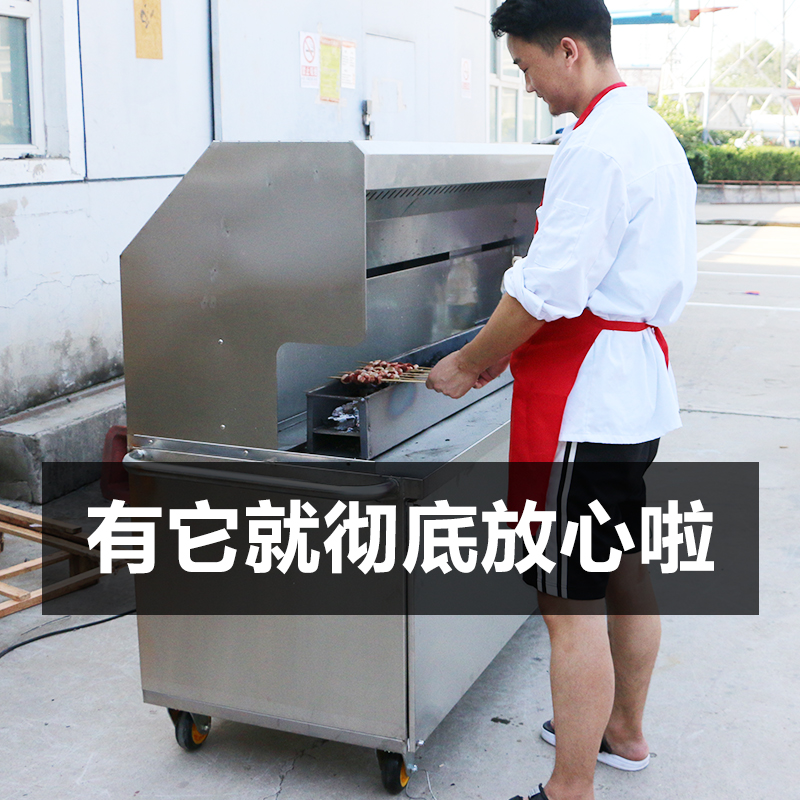 Houshan smokeless barbecue cart Grill commercial large charcoal mobile stall lampblack purifier oven grill Grill