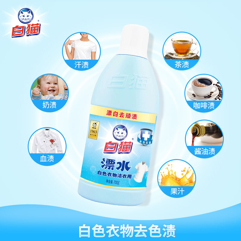 White cat colored bleached bleached white water laundry detergent to stain to go yellow add white soy sauce stains sweat stains milk stains 2 bottles