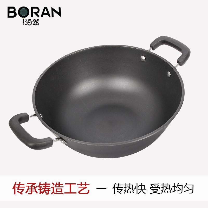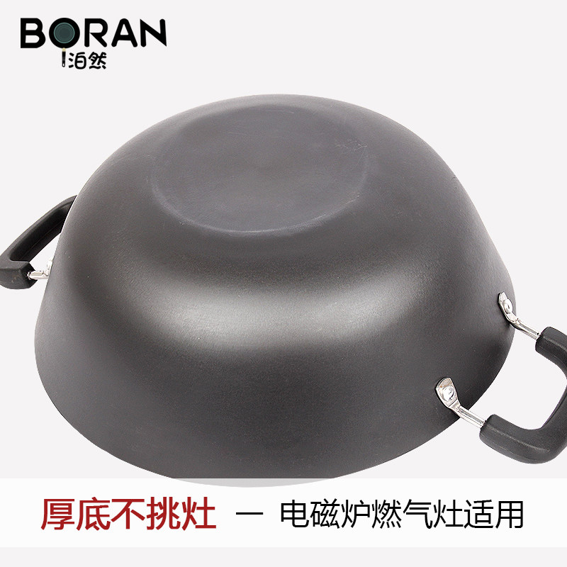 Bolan cast iron pot Double-ear deep iron pot Old-fashioned wok Household large stew pot uncoated wok Induction cooker Universal