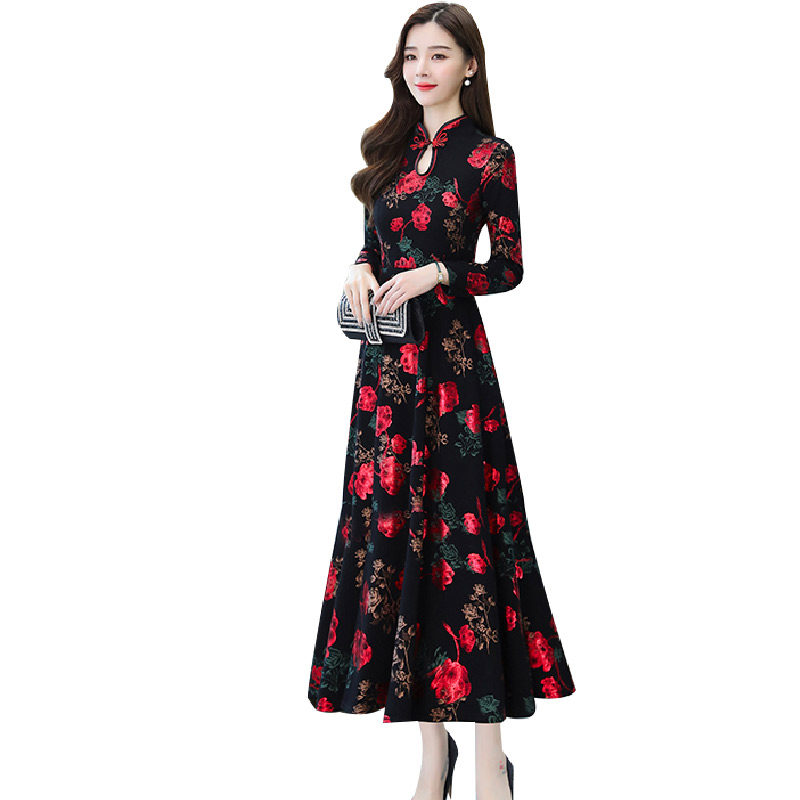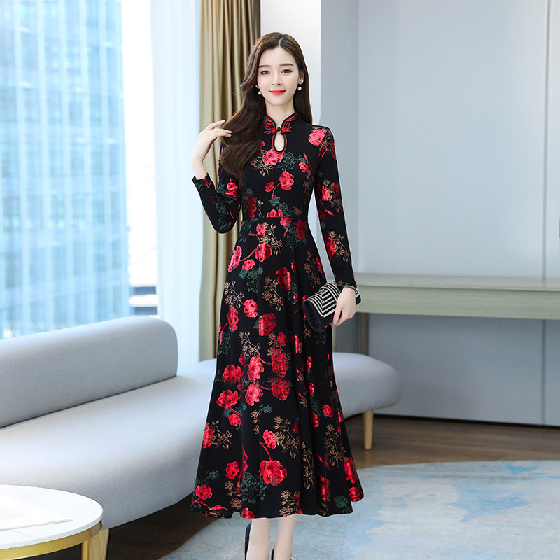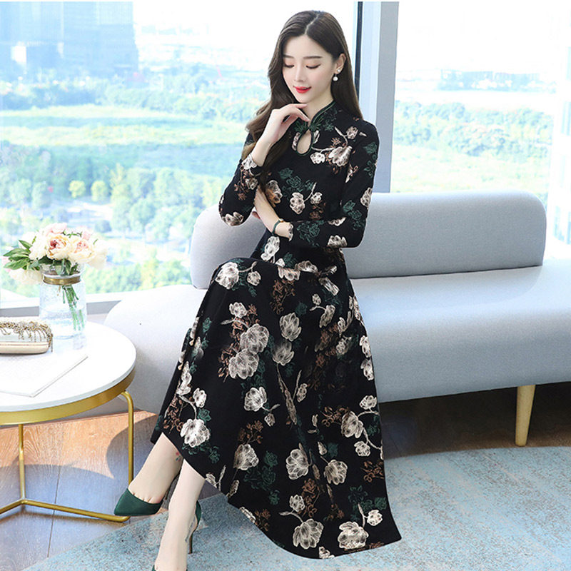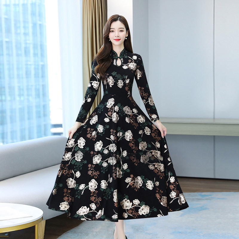 2021 early autumn new women's long sleeve dress fashion temperament floral skirt your wife improved cheongsam long version
