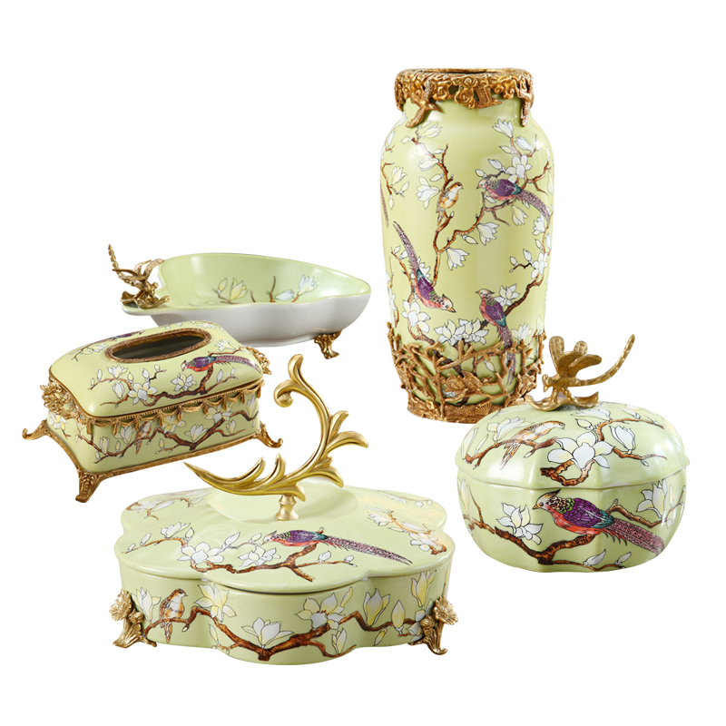 Bronze toothpicks extinguishers (A) ceramic with copper bronze ashtray (A) ceramic with copper bronze jewelry box (A) ceramic with copper bronze plate, ceramic with copper bronze compote B (A) ceramic with copper bronze compote C (A) ceramic with copper bronze small storage tank (A) ceramic with copper bronze large storage tank (A) ceramic with copper bronze tissue box (ceramic with copper) bronze vase A (tao