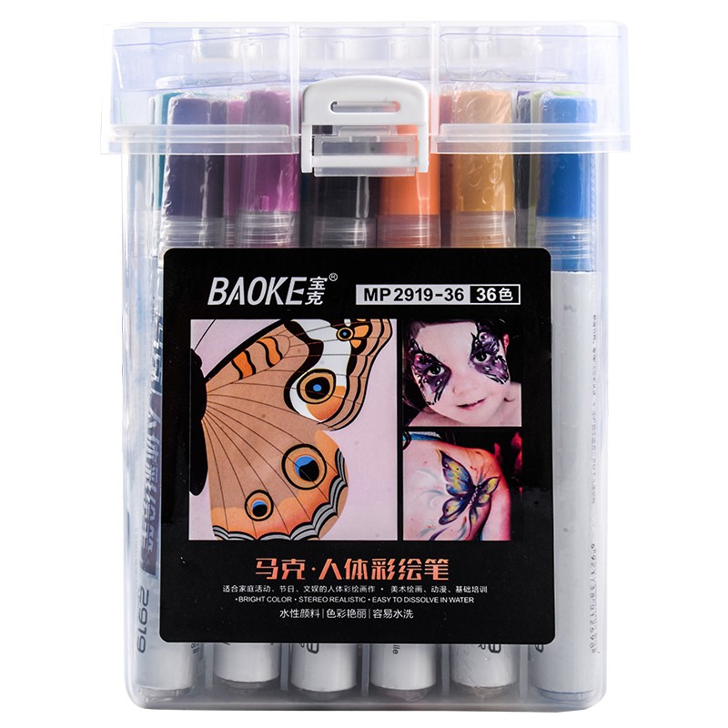 Puckerman body color plotter face 36 color rainbow paint water-based Mike pen child water soluble skin color painted graffiti pen coated with skin wax pen washable fans Christmas makeup pen