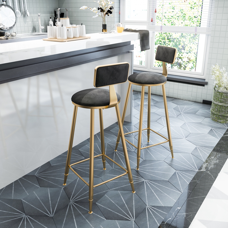 Bar chair Nordic light luxury net red high bar stool modern coffee shop milk tea shop leisure back high chair