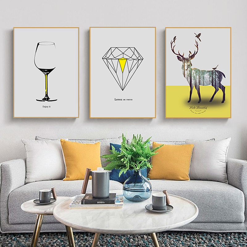 Nordic living room decorative painting modern minimalist sofa background wall mural combination personalized dining room creative light luxury painting