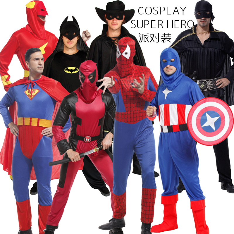 Halloween adult men and women dress up as Captain America Spider Batman Batman Superman Sulo Lightning Man's clothes