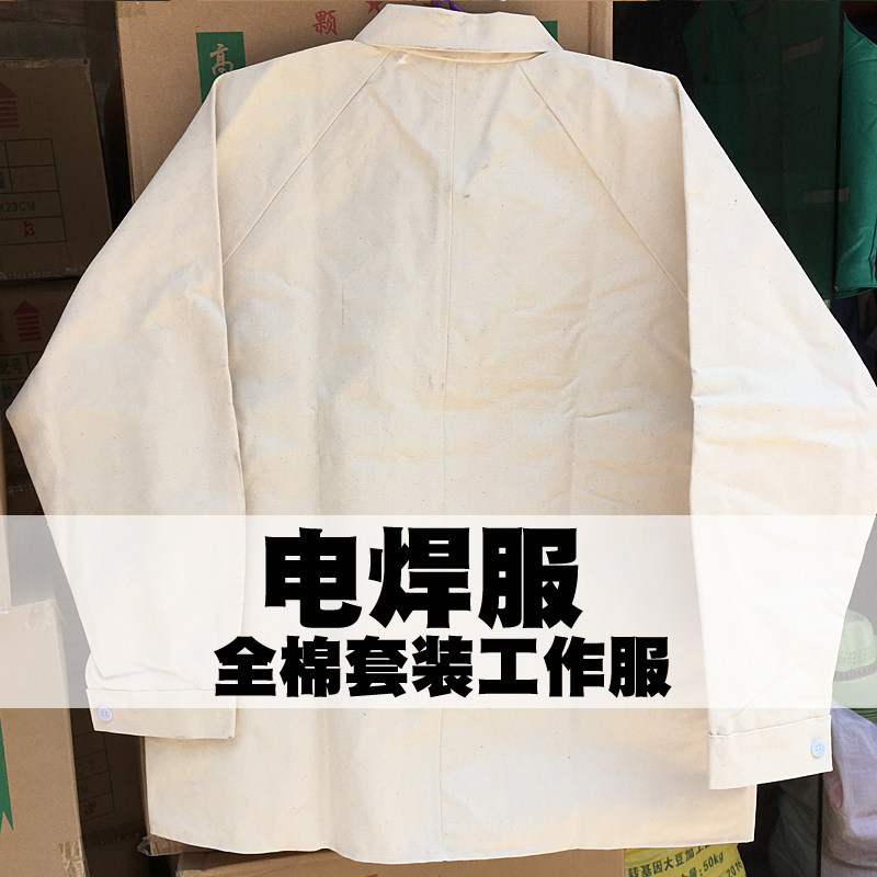 Shanghai Baoye Labor White 4x4 Canvas Welding Clothes Cotton Workwear Wear-resistant Anti-scalding Labor Insurance Welding Clothes