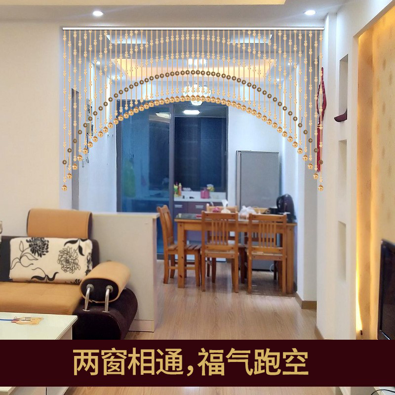 Crystal bead curtain copper money gourd Fengshui door curtain partition curtain living room decoration aisle toilet bedroom entrance free of punching