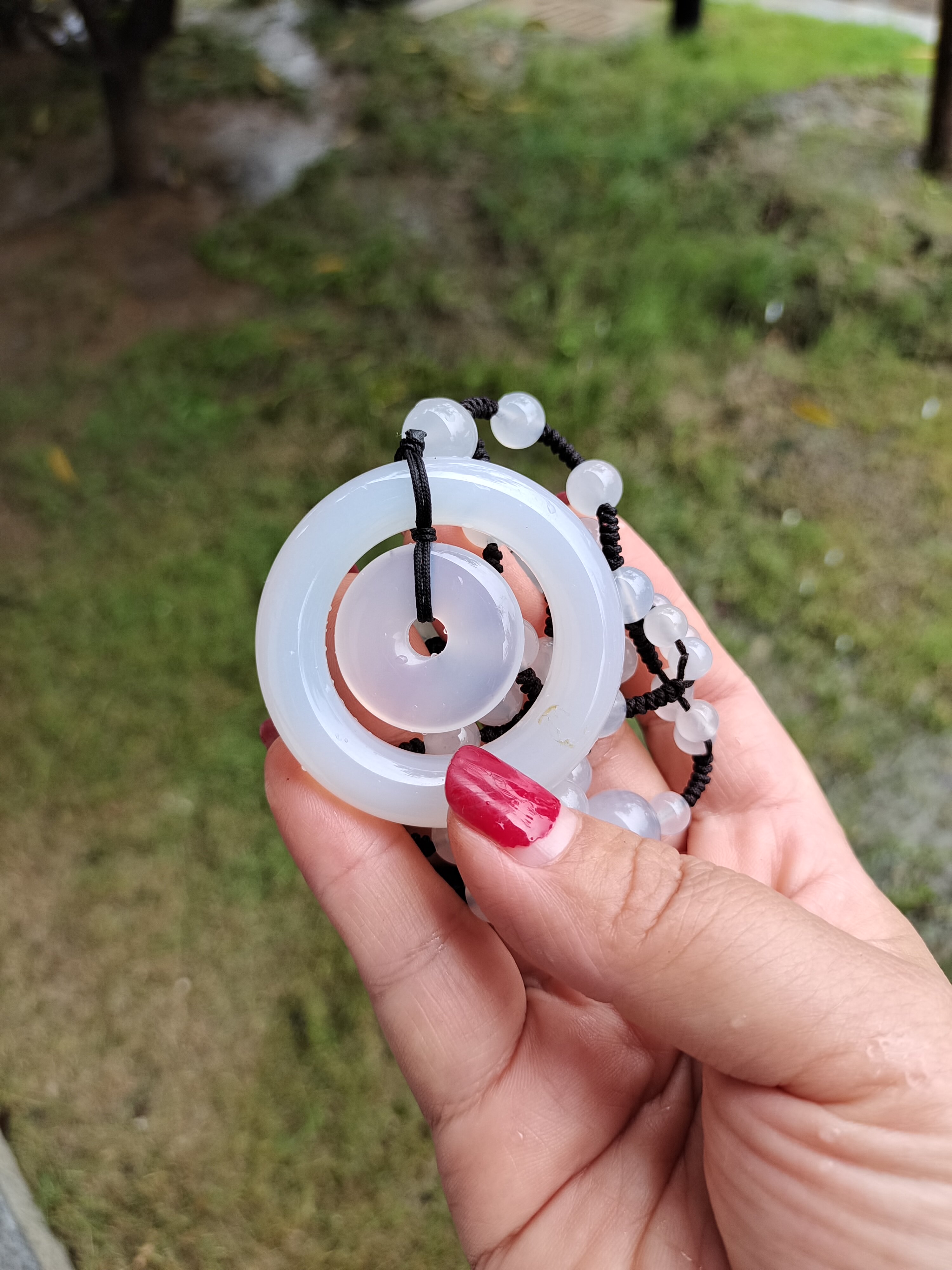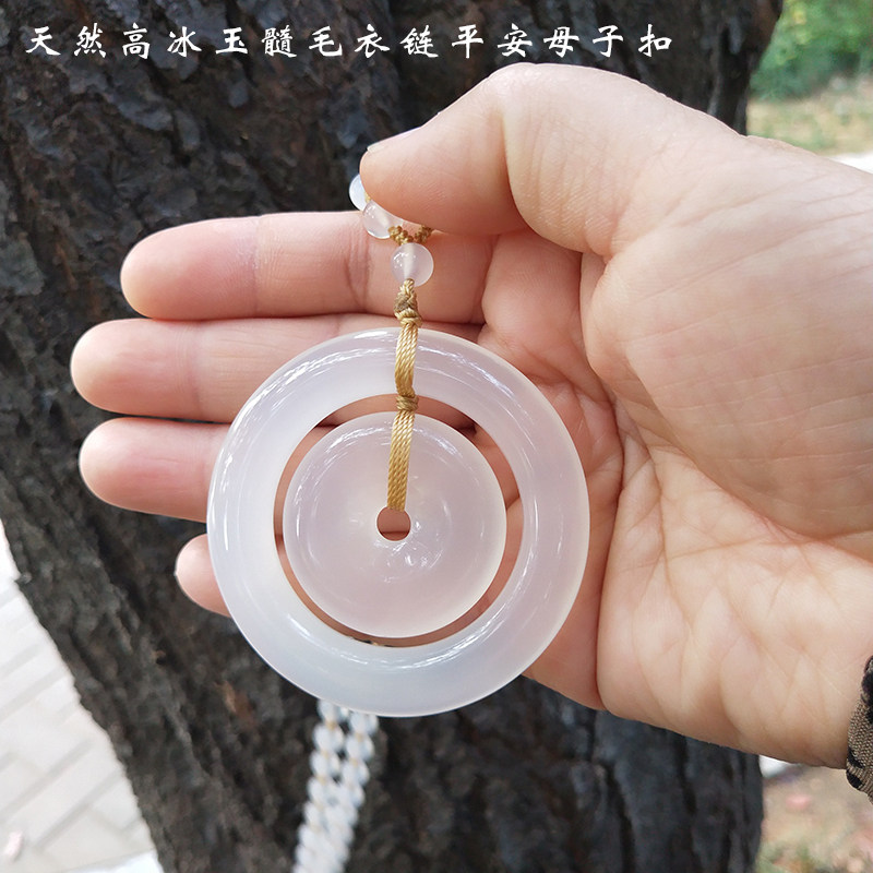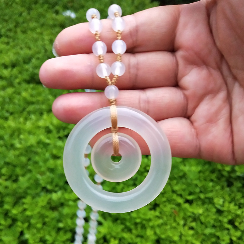 Natural high ice chalcedony agate safety buckle necklace long female summer long pendant all-match decorative accessories retro literature and art