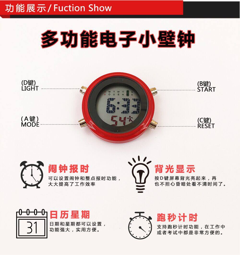 Pure white night light electronic clock black multi-function car clock round black without second + 2 tape no night round red without second + 2 tape no night light round blue without second + 2 tape no night light round blue without second + 2