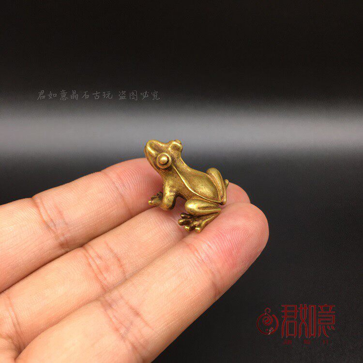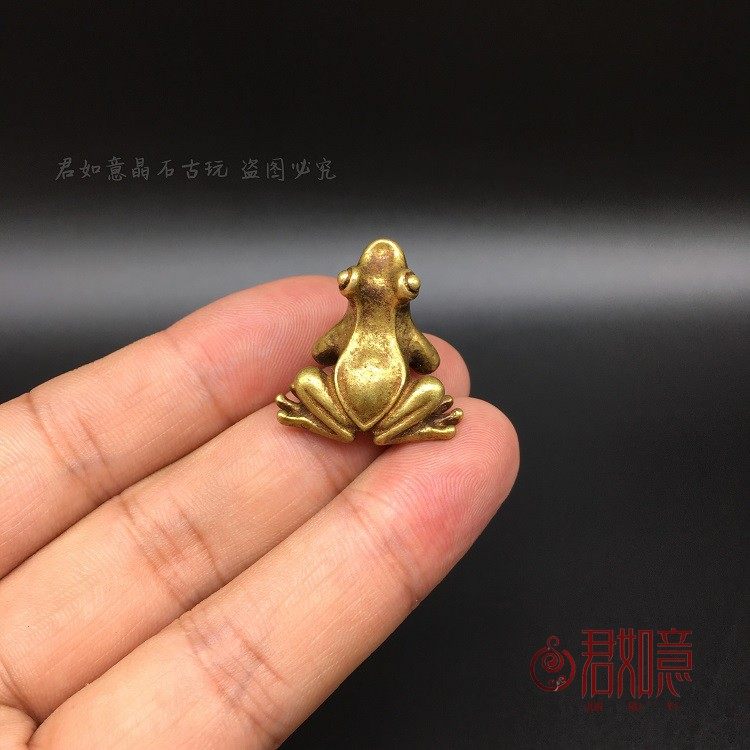 Solid copper mini frog piece brass cute little frog pocket bronze frog animal copper carvings small copper piece