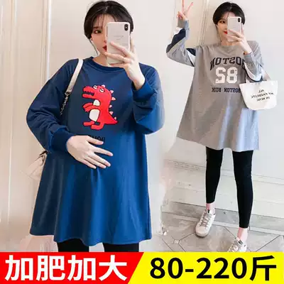 Plus size plus size pregnant women's sweater spring and autumn cotton loose T-shirt top belly pants casual two-piece 200kg