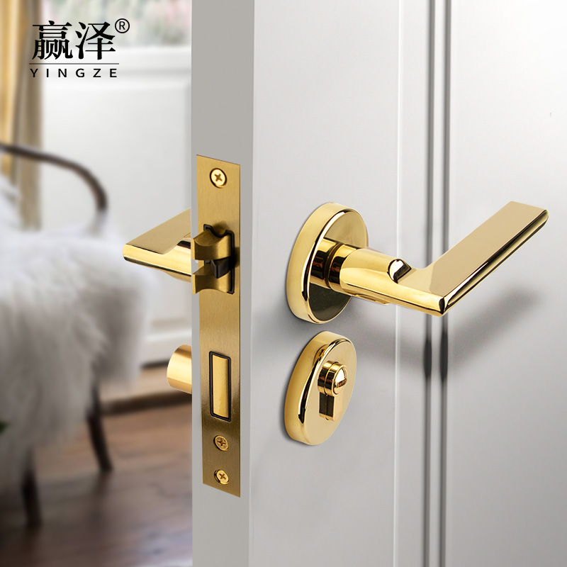 Golden door lock indoor silent magnetic suction lock light luxury door door split wooden door handle bedroom lock