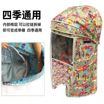 Three-fold anti-heavy rain cotton shed gray peacock pattern(without seats) Standard version of high fence rear seat(with straps) w8 large and long age thickened waterproof cotton shed white peacock(without seats)