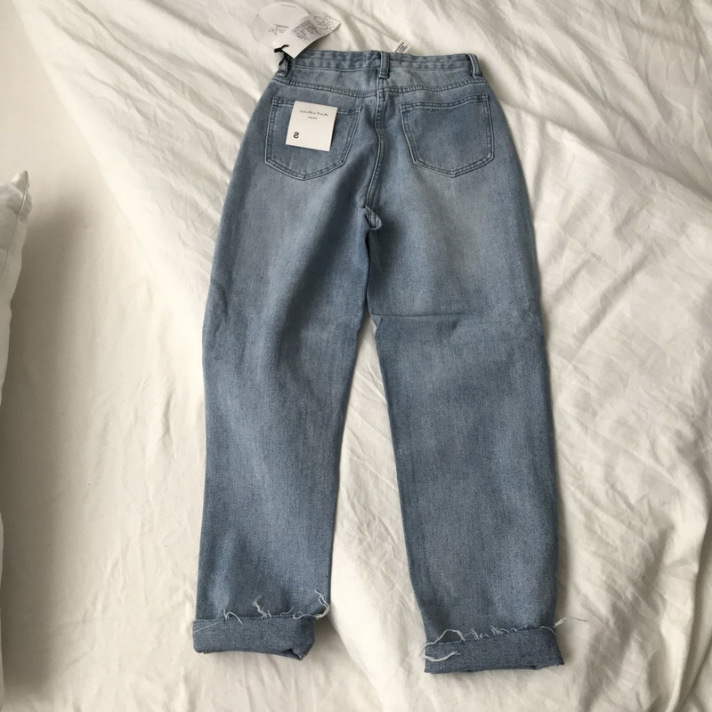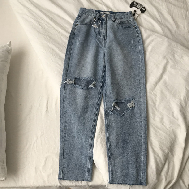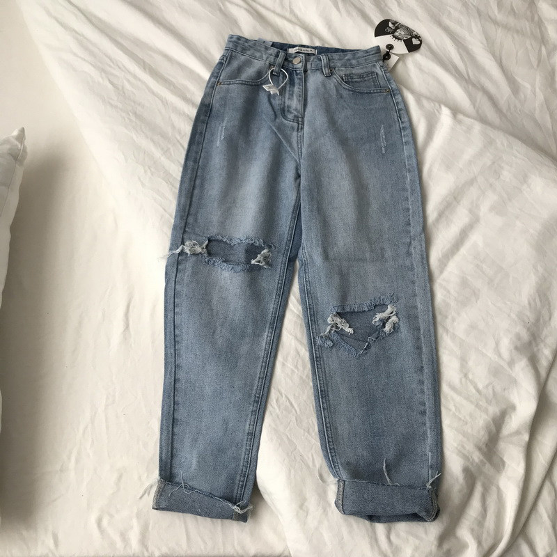Fat sister big size women's dress 2022 new spring loose fit for hip thigh thick pants breaking hole jeans women's damp