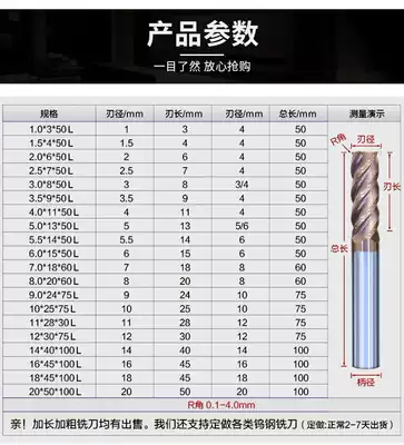 Tungsten steel round nose knife Alloy end milling cutter 55 degree 4 edge R-angle bull nose knife Taiwan process Nano-coated hard material