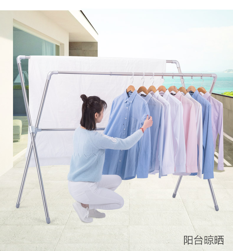 Friend LittX Type Clothes Hanger Floor Double-Lever Telescopic Rod Balcony Sunburn Outdoor Sun Quilt Folding Folding Containing Deck Shelf