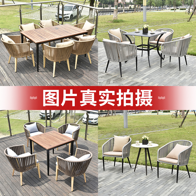 Outdoor Balcony Table And Chairs Patio balcony Woven Rope Sunscreen Chair Leaning Back Chair Outdoor Garden Casual Three-Style Suits