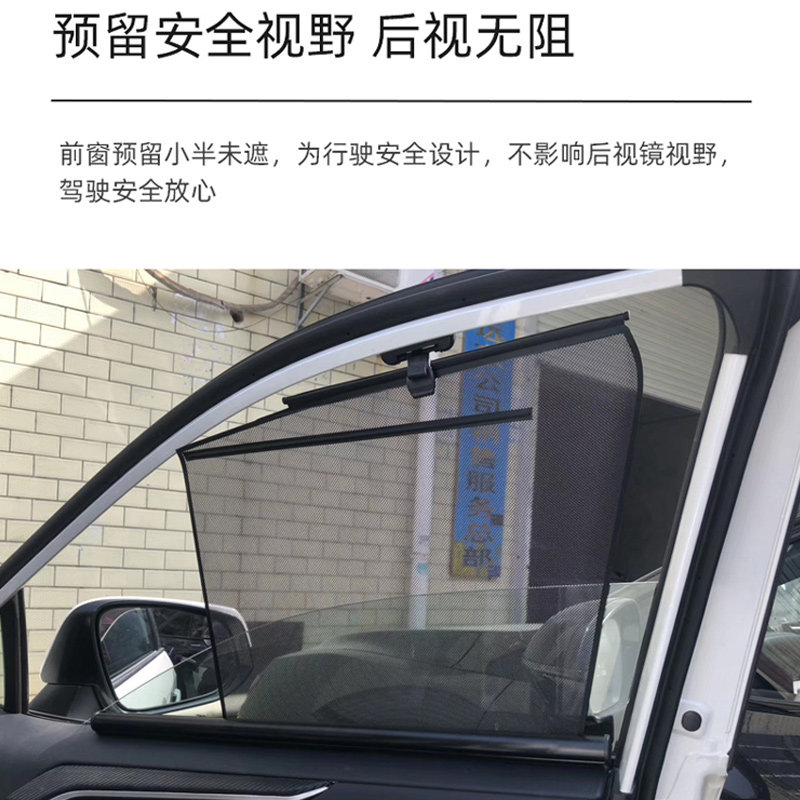 One front bumper (for parking and parking) (double-layer high-density mesh), two pieces for the main and auxiliary drivers (double-deck high-density mesh), two pieces for the rear row (double-layer high-density mesh), two triangular windows, one tailgate (not blocking the line of sight) (silver