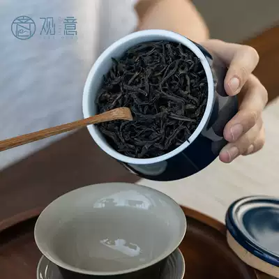 Guanyi ceramic tea jar Japanese simple portable travel small tea jar Household sealed moisture-proof storage jar